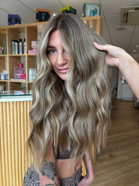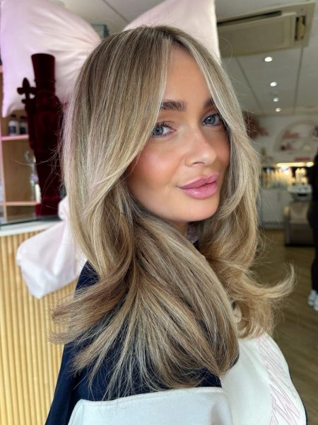 This look focuses on high detailing: ultra-fine micro foils and softly diffused face-framing pieces that melt seamlessly into the base. There’s no bold contrast, it’s all about a smooth, velvety blend where dimension is understated, creating a finish that feels expensive, modern and beautifully natural. Basically, it’s where luxury meets subtlety with Suede Blonde, as Gaby explains.