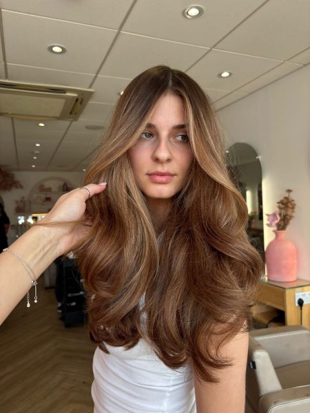 Chosen by Gaby, she notes it channels high-gloss glamour with a warm, sunlit edge. Free-hand balayage techniques build richness through the mid-lengths and ends, blending bronze and copper tones into darker bases. The result enhances natural depth while delivering a signature glowing finish synonymous with a ‘bronze goddess’ aesthetic.
