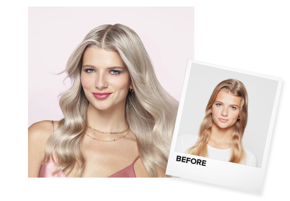 • 9P (9/8) refines unwanted yellow tones, resulting in a balanced blonde. On lighter levels, a soft pearl tone is revealed.