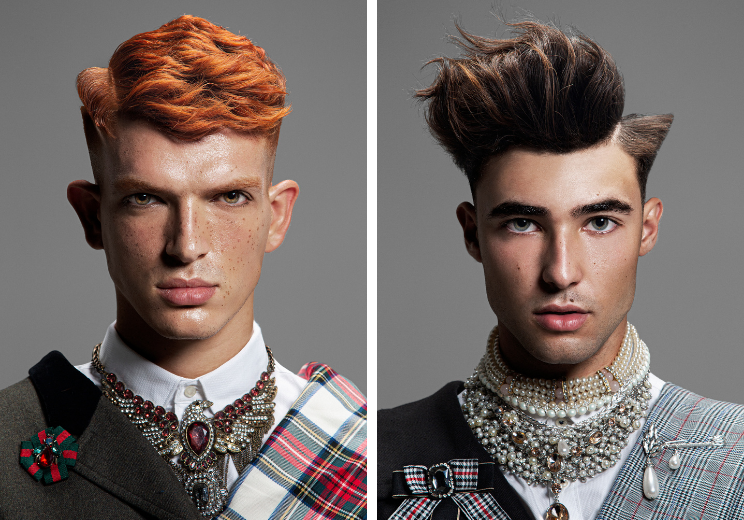 For this reason, Leben is a tribute to the millions of people who died only because of their sexual orientation, victims of ruthless fanaticism. The tones of the hair reflect the different geographical origins, which together with the different haircuts and volumes show a different essence. Uniforms remind us of a rigid masculinity, a harsh aesthetic in features and hairstyles, with very marked haircuts to harden jaws, which is counteracted by the presence of excessive jewelry.