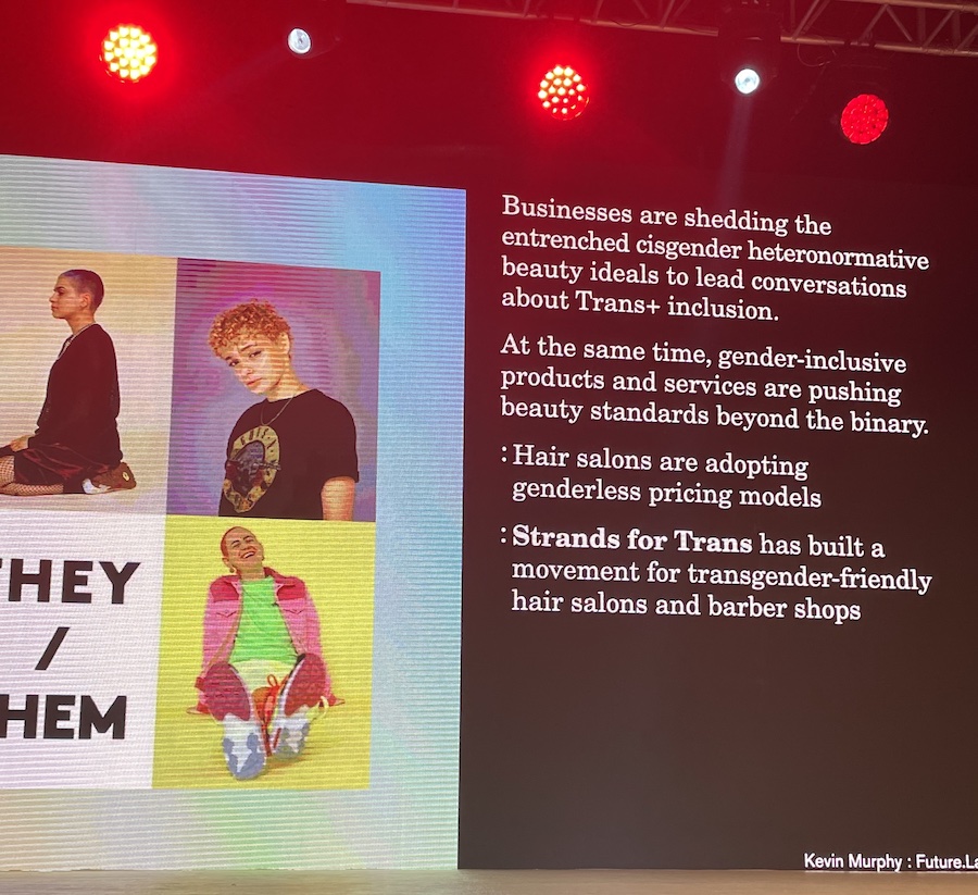 • Evolving Demographics is how we refer to the broadening of the clientele coming to salons and businesses should adapt products and services to meet the diversity of the worlds’ evolving demographics. The growth of the Afro hair offering is a prime example both in products and education on working with textured hair. We also need to talk more about gender inclusion such as hair salons adopting genderless pricing models.