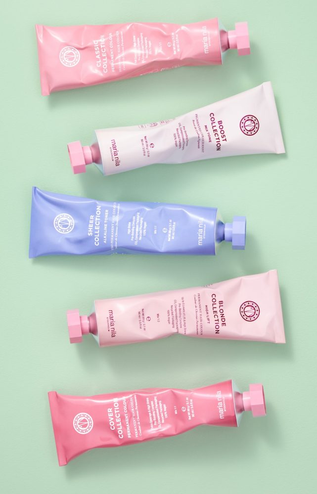 The entire Maria Nila Color Collection is a comprehensive professional colour system that includes permanents, demi-permanents, developers, and supporting products. It is designed to serve Maria Nila salons with a full back-bar concept.